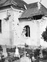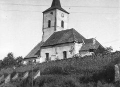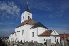 Informace: Věž má novou měděnou střechu. Věž má opravenou fasádu, zdivo lodi místy potřebuje opravit nátěr. - Počátky kostela lze datovat do období kolem roku 1300, poprvé je zmiňován v roce 1345. Na přelomu 13. a 14. století zde vznikl malý jednolodní kostelík, k němuž byla ve 2. polovině 15. století přistavěna mohutná věž a zároveň byl chrám opevněn kamennou hradbou s baštou. Po roce 1667 byl po požáru zrekonstruován, bylo postaveno zděné zvonicové patro věže (původní dřevěné shořelo). Někdy v pozdější době došlo k zásadní barokní přestavbě kostela, bylo zbořeno původní kněžiště a k původní lodi a věži byla přistavěna nová loď s presbytářem. V původní lodi byla ve 2. polovině 18. století vybudována hudební kruchta, v téže době vznikla i předsíň v západním průčelí. V roce 1857 byla postavena sakristie. Kostel byl poškozen při bojích v závěru 2. světové války na jaře 1945; následně byl opraven. - V opevněném areálu kolem kostela se nachází hřbitov. - Pozemek s kostelem patří římskokatolické církvi.