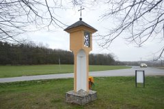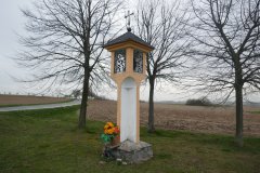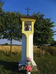 Informace: Má novou střechu. Zdivo dole potřebuje opravit nátěr. Zavřená, zařízená. - Kaplička je z betonu, natíraná. - Původní kaplička byla datována na pískovcovém soklu kříže ve vrcholu stanové stříšky rokem 1739. Sokl s datováním a plechový dvouramenný kříž byl zničen začátkem 80. let 20. století a o něco později byla celá kaplička zbořena při rozšiřování křižovatky. V roce 1997 byla kaplička ve spolupráci farního úřadu ve Sloupu a ostrovských občanů (Jaroslavy a Antonína Ševčíkových) obnovena v jiné podobě cca 12 m jihovýchodním směrem mimo křižovatku. Po obnově byla kaplička dne 14.9.1997 posvěcena sloupským farářem P. Františkem Kozárem. - Pozemek s kapličkou patří římskokatolické církvi.